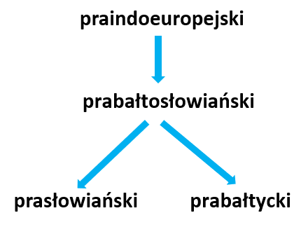 - hipoteza bardziej tradycyjna mówi, że prabałtosłowiański podzielił się na język prasłowiański (który był przodkiem wszystkich języków słowiańskich, m.in. języka polskiego) i język prabałtycki (który był przodkiem wszystkich języków bałtyckich, m.in. litewskiego, łotewskiego i wymarłego staropruskiego).